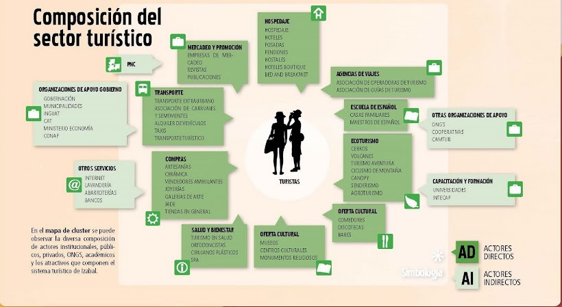 En el siguiente mapa de cluster se puede observar la diversa composición de actores institucionales, públicos, privados, ONGS, y académicos que componen el sistema turístico de Sacatepéquez.